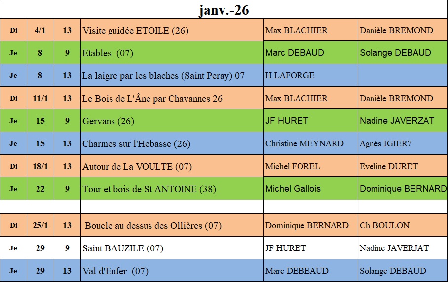 Programme de Janvier à Février 2026
