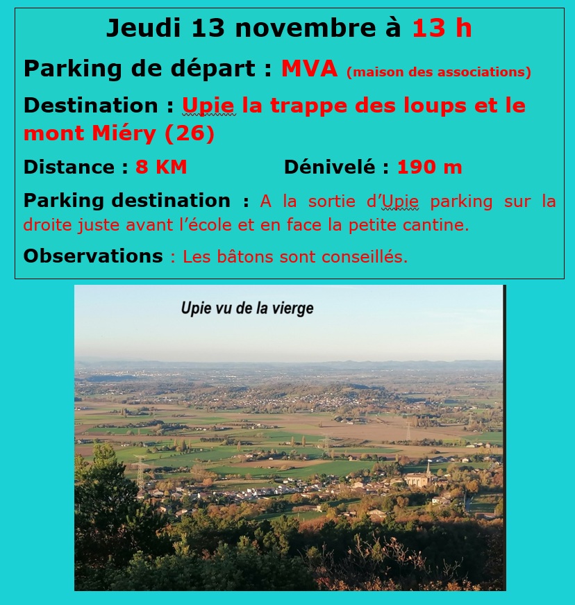 Départ à 9 heures de la M.V.A. pour une rando de 5,2km et 170m.