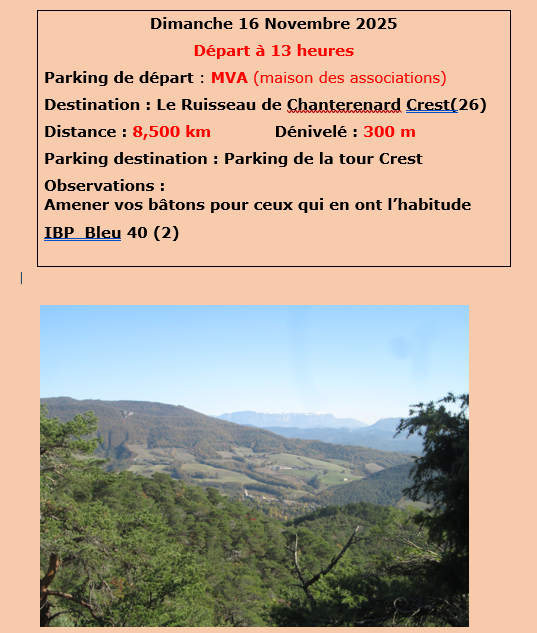 Jeudi 11 Décembre 2025 nous vous proposons une journée "rando-resto" à OZON (07)
