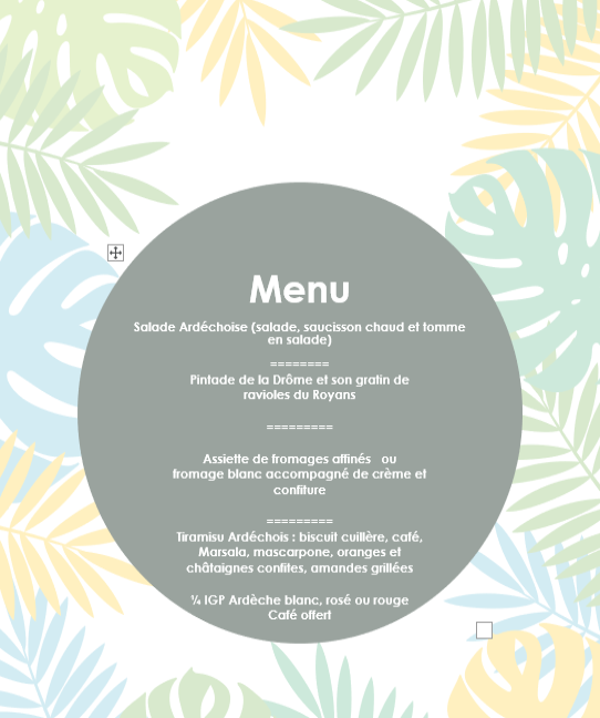 Prix du repas 34 € vin compris, Café offert (Apéro à la charge de RANDO-EVASION)