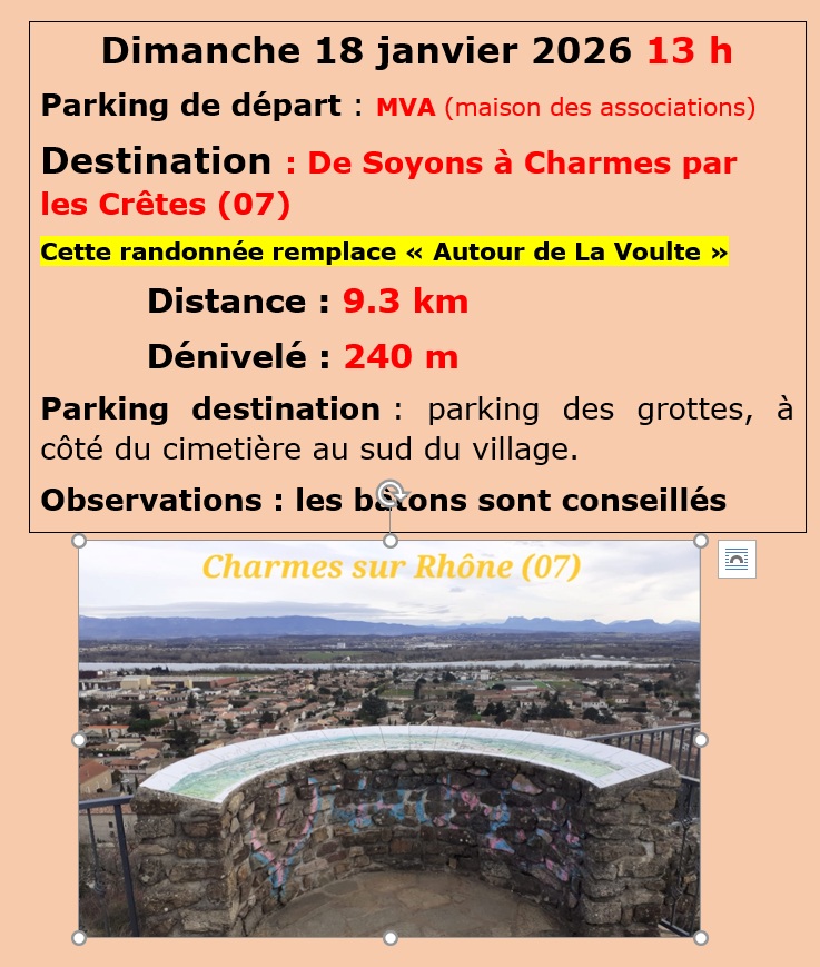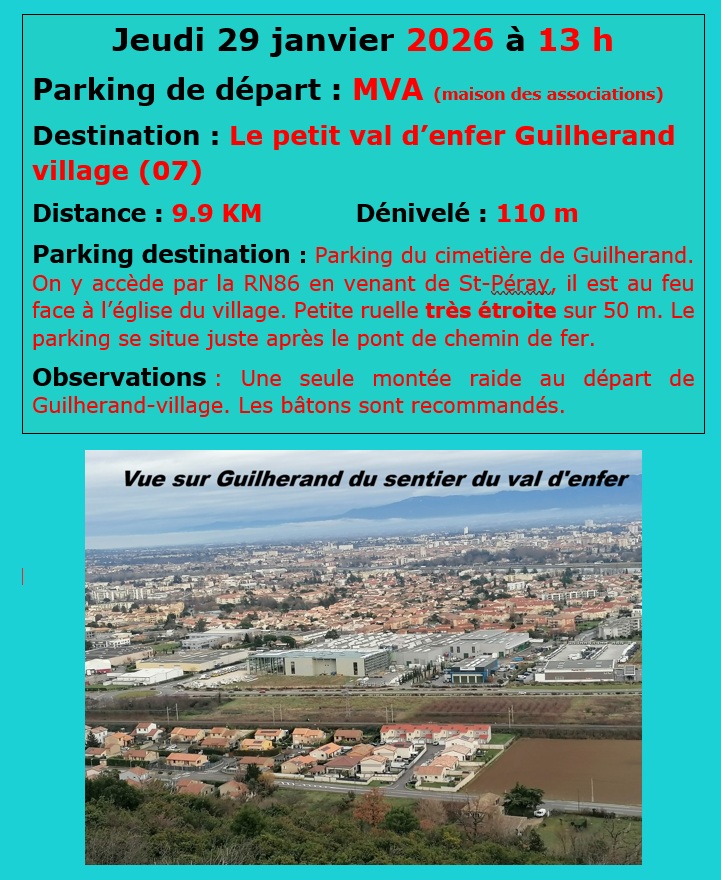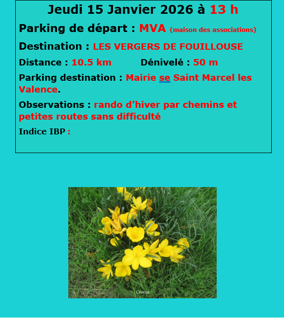 Si le jour d'une randonnée le temps est incertain mais qu'elle n'est pas annulée sur le site il est préférable de se rendre au départ de la Maison de la Vie Associative plutôt que d'aller directement sur le lieu de départ de la randonnée. (ou envoyer un mail sur rando-evasion@orange.fr)
