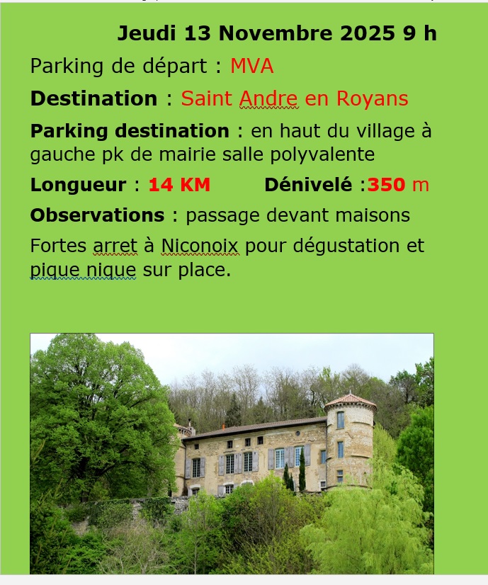 Jeudi 11 Décembre 2025 nous vous proposons une journée "rando-resto" à OZON (07)